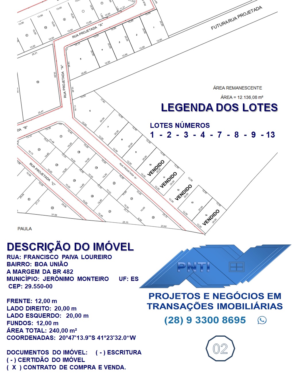 LOTES NO BAIRRO BOA UNIÃO - BR 482