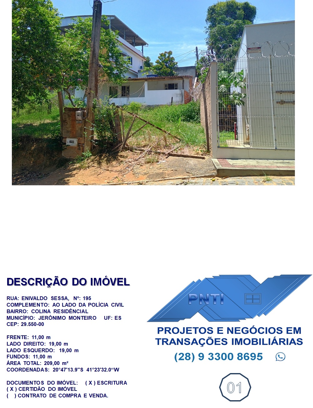 IMÓVEIS URBANO - JERÔNIMO MONTEIRO - ES